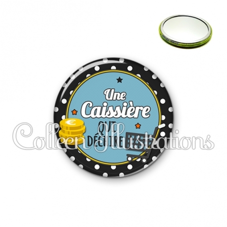 Miroir simple avec dos métallique décoré d'une image fantaisie et texte.