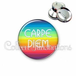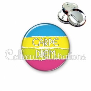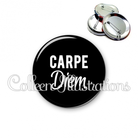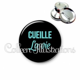 Image imprimée en haute résolution sur papier de qualité, protégée d'un film plastique, et sertie sur une coque et épingle métallique.