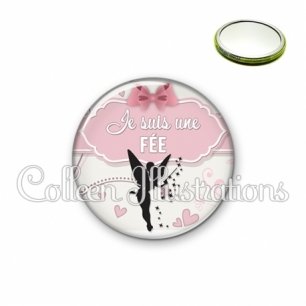 Miroir simple avec dos métallique décoré d'une image fantaisie et texte.