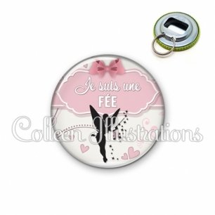 Décapsuleur métallique avec image fantaisie et texte.