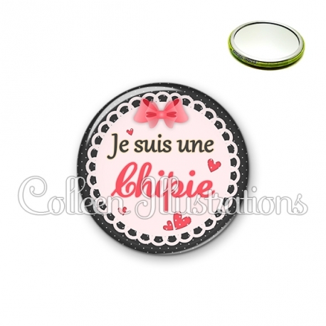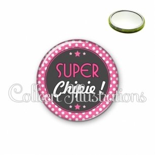 Miroir simple avec dos métallique décoré d'une image fantaisie et texte.