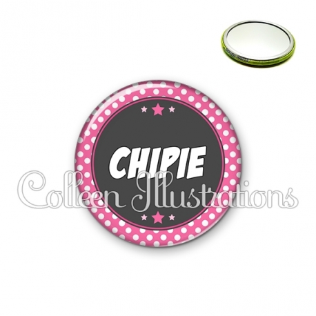 Miroir simple avec dos métallique décoré d'une image fantaisie et texte.