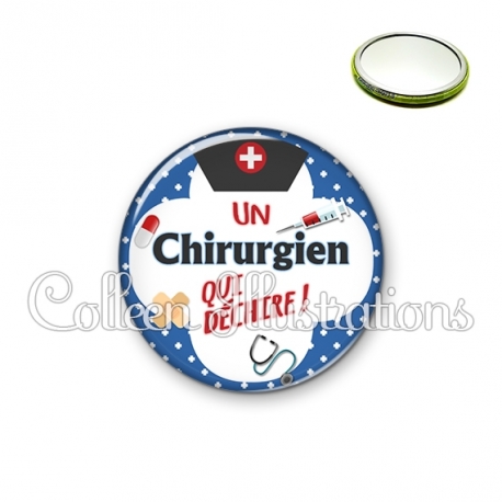 Miroir simple avec dos métallique décoré d'une image fantaisie et texte.