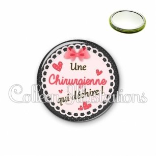 Miroir simple avec dos métallique décoré d'une image fantaisie et texte.