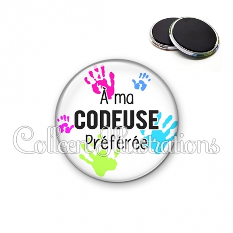 Image imprimée en haute résolution sur papier de qualité, protégée d'un film plastique, et sertie sur une coque métallique avec dos aimanté.