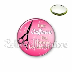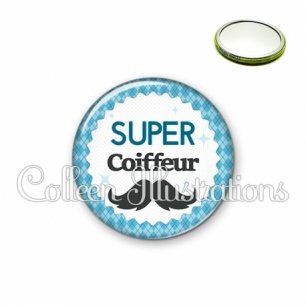 Miroir simple avec dos métallique décoré d'une image fantaisie et texte.