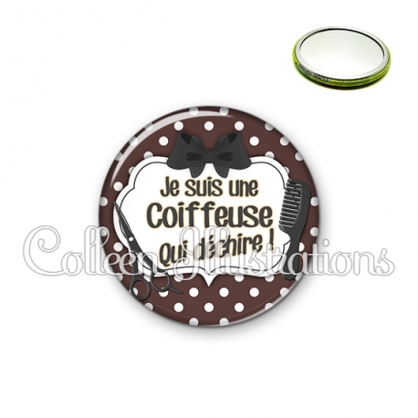Miroir simple avec dos métallique décoré d'une image fantaisie et texte.