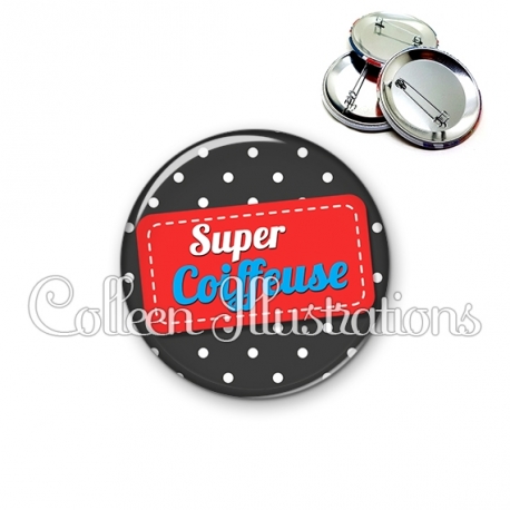 Image imprimée en haute résolution sur papier de qualité, protégée d'un film plastique, et sertie sur une coque et épingle métallique.