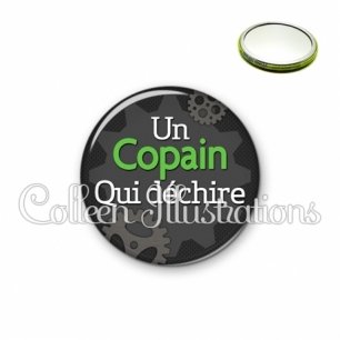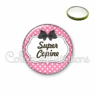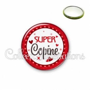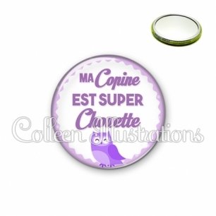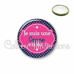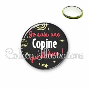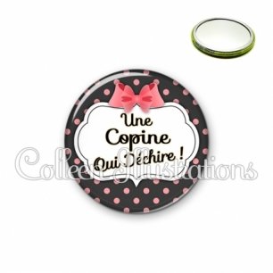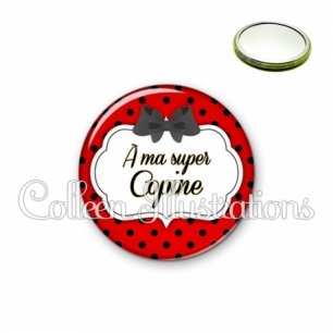 Miroir simple avec dos métallique décoré d'une image fantaisie et texte.
