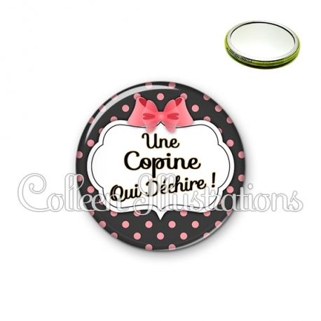 Miroir simple avec dos métallique décoré d'une image fantaisie et texte.
