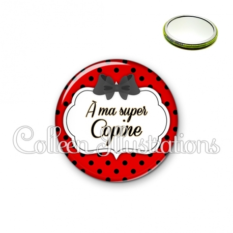 Miroir simple avec dos métallique décoré d'une image fantaisie et texte.