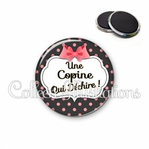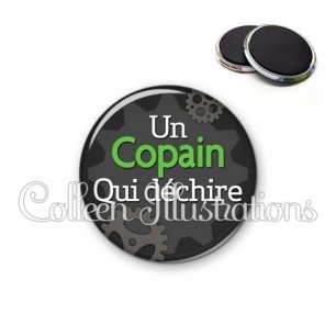 Image imprimée en haute résolution sur papier de qualité, protégée d'un film plastique, et sertie sur une coque métallique avec dos aimanté.