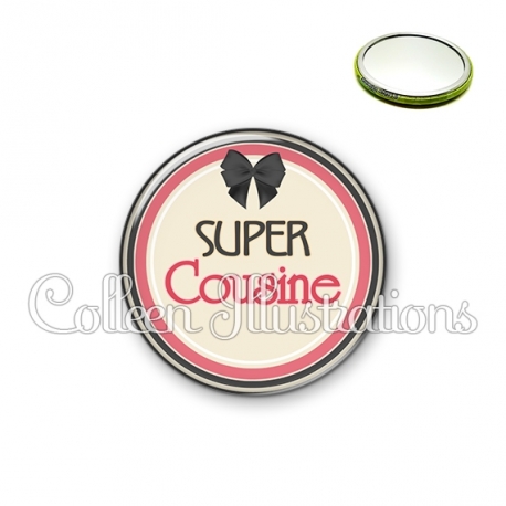 Miroir simple avec dos métallique décoré d'une image fantaisie et texte.
