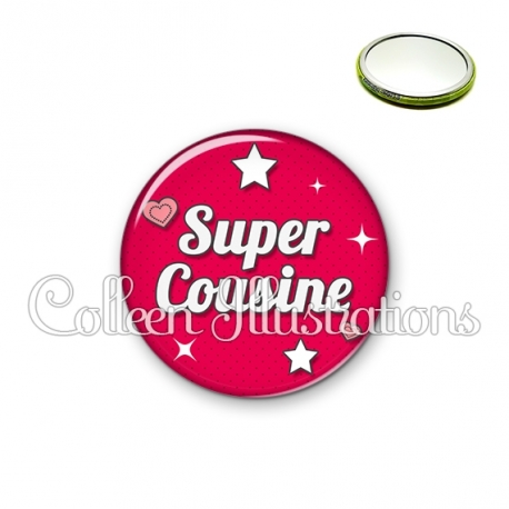 Miroir simple avec dos métallique décoré d'une image fantaisie et texte.