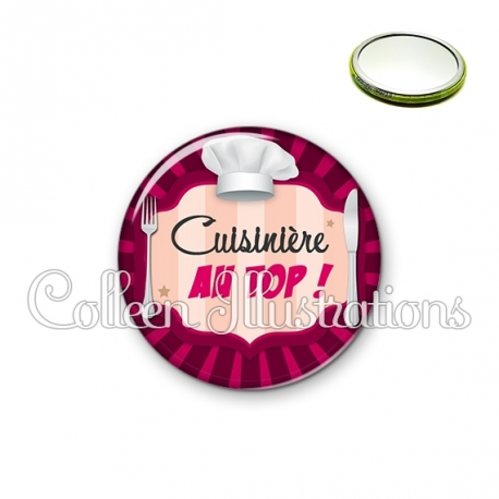 Miroir simple avec dos métallique décoré d'une image fantaisie et texte.