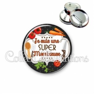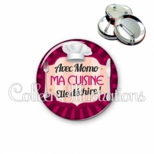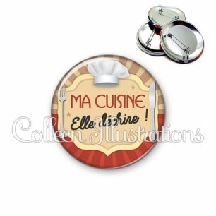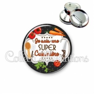 Image imprimée en haute résolution sur papier de qualité, protégée d'un film plastique, et sertie sur une coque et épingle métallique.