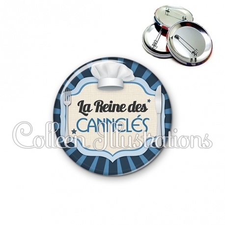 Image imprimée en haute résolution sur papier de qualité, protégée d'un film plastique, et sertie sur une coque et épingle métallique.
