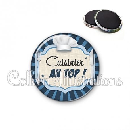 Image imprimée en haute résolution sur papier de qualité, protégée d'un film plastique, et sertie sur une coque métallique avec dos aimanté.