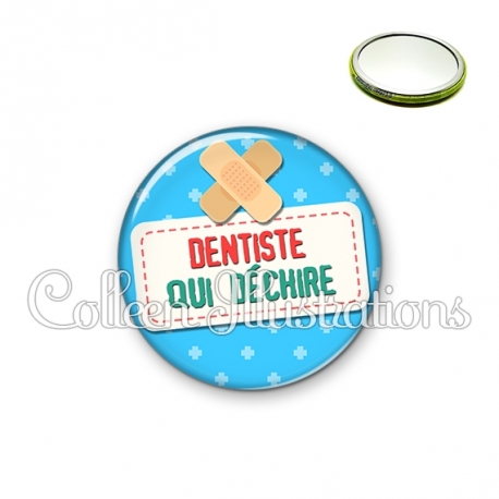 Miroir simple avec dos métallique décoré d'une image fantaisie et texte.