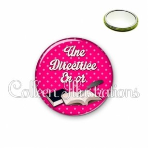 Miroir simple avec dos métallique décoré d'une image fantaisie et texte.