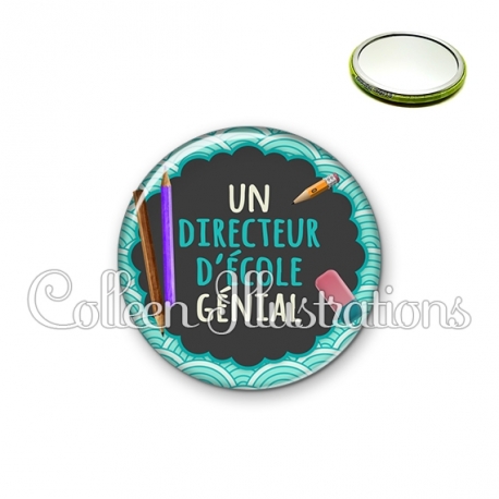 Miroir simple avec dos métallique décoré d'une image fantaisie et texte.