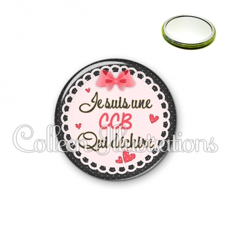 Miroir simple avec dos métallique décoré d'une image fantaisie et texte.