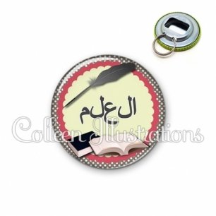 Image imprimée en haute résolution sur papier de qualité, protégée d'un film plastique, et sertie sur une coque métallique avec dos décapsuleur.