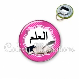 Image imprimée en haute résolution sur papier de qualité, protégée d'un film plastique, et sertie sur une coque métallique avec dos décapsuleur.