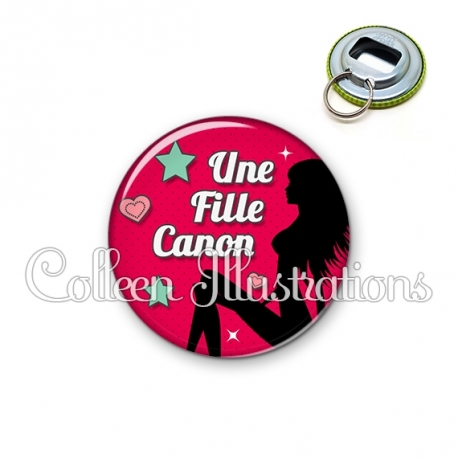 Image imprimée en haute résolution sur papier de qualité, protégée d'un film plastique, et sertie sur une coque métallique avec dos décapsuleur.