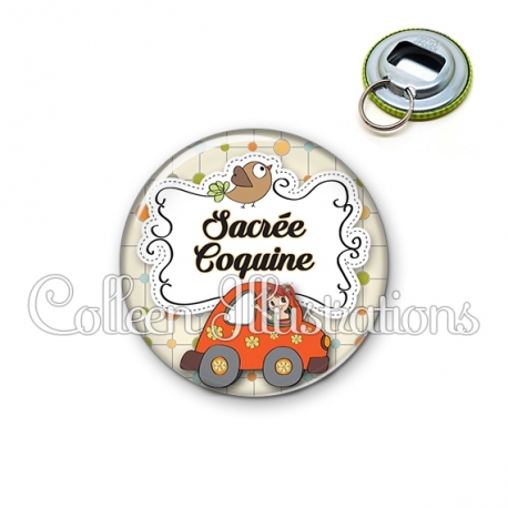 Image imprimée en haute résolution sur papier de qualité, protégée d'un film plastique, et sertie sur une coque métallique avec dos décapsuleur.