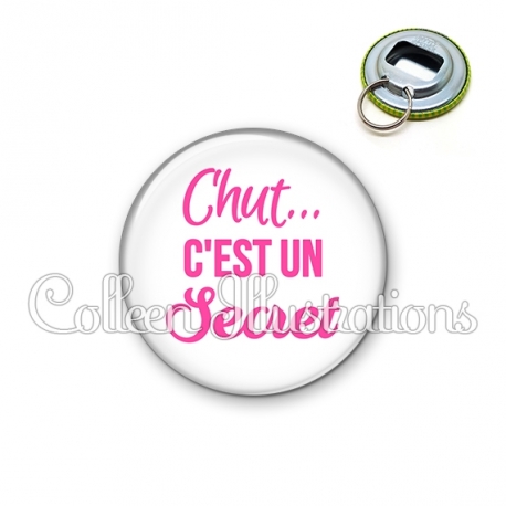 Image imprimée en haute résolution sur papier de qualité, protégée d'un film plastique, et sertie sur une coque métallique avec dos décapsuleur.