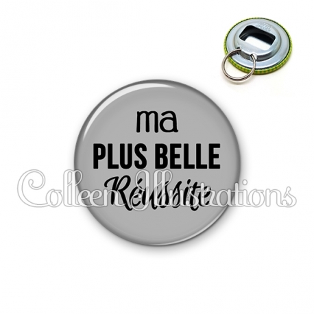 Image imprimée en haute résolution sur papier de qualité, protégée d'un film plastique, et sertie sur une coque métallique avec dos décapsuleur.