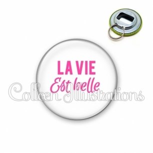 Image imprimée en haute résolution sur papier de qualité, protégée d'un film plastique, et sertie sur une coque métallique avec dos décapsuleur.