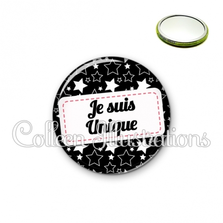 Miroir simple avec dos métallique décoré d'une image fantaisie et texte.