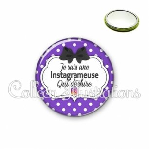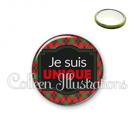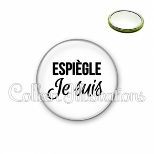 Miroir simple avec dos métallique décoré d'une image fantaisie et texte.