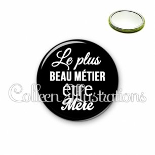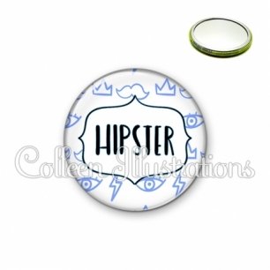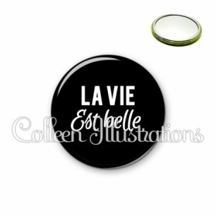 Miroir simple avec dos métallique décoré d'une image fantaisie et texte.