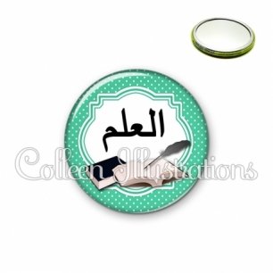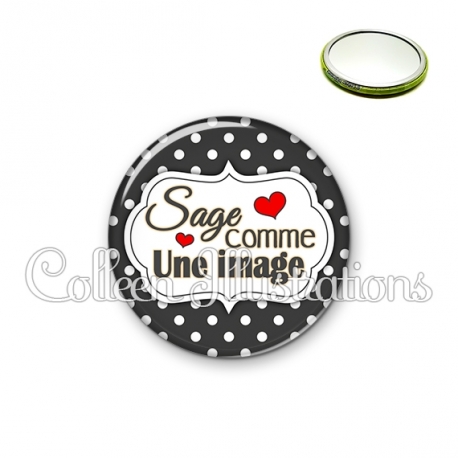 Miroir simple avec dos métallique décoré d'une image fantaisie et texte.