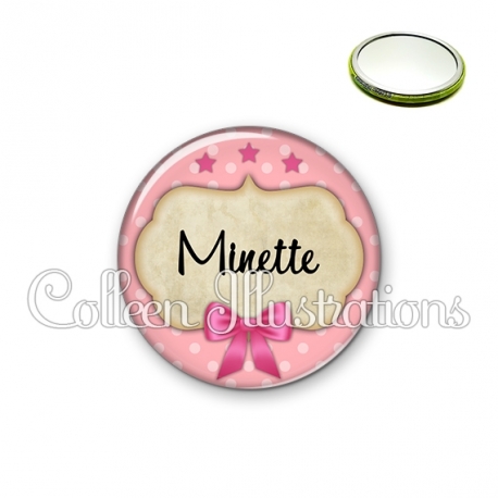 Miroir simple avec dos métallique décoré d'une image fantaisie et texte.