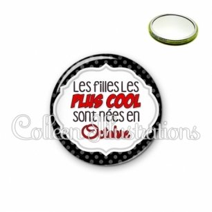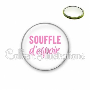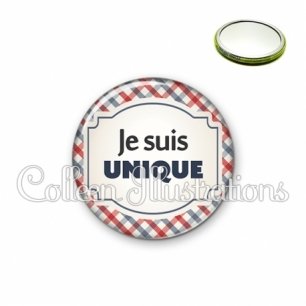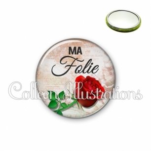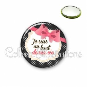 Miroir simple avec dos métallique décoré d'une image fantaisie et texte.