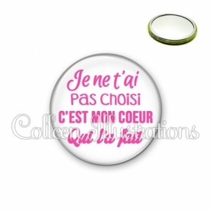 Miroir simple avec dos métallique décoré d'une image fantaisie et texte.