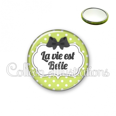 Miroir simple avec dos métallique décoré d'une image fantaisie et texte.