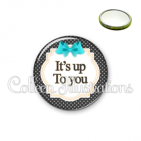 Miroir simple avec dos métallique décoré d'une image fantaisie et texte.