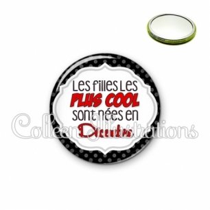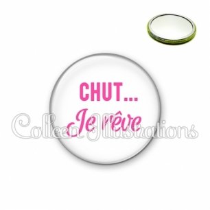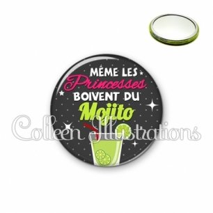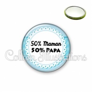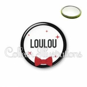 Miroir simple avec dos métallique décoré d'une image fantaisie et texte.
