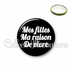 Miroir simple avec dos métallique décoré d'une image fantaisie et texte.
