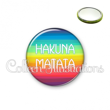 Image imprimée en haute résolution sur papier de qualité, protégée d'un film plastique, et sertie sur une coque métallique avec dos miroir. Une seule face, non grossissante.