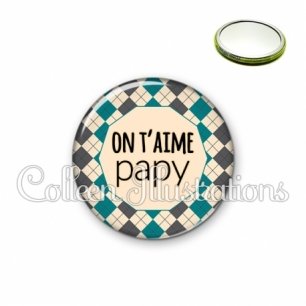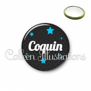 Miroir simple avec dos métallique décoré d'une image fantaisie et texte.