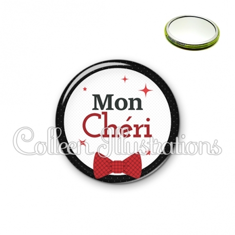 Miroir simple avec dos métallique décoré d'une image fantaisie et texte.