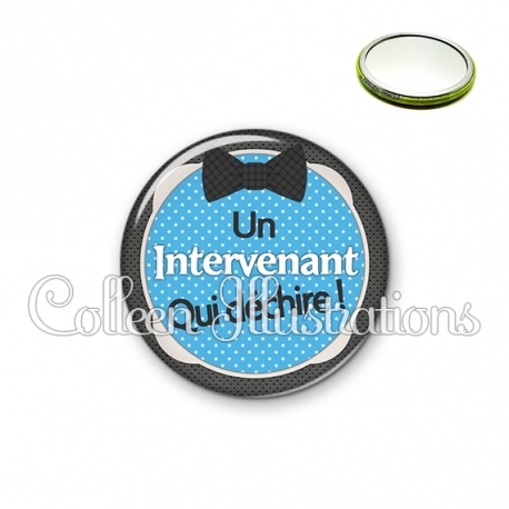 Miroir simple avec dos métallique décoré d'une image fantaisie et texte.