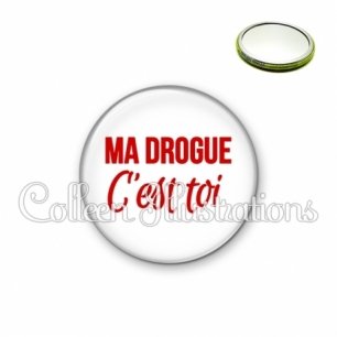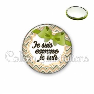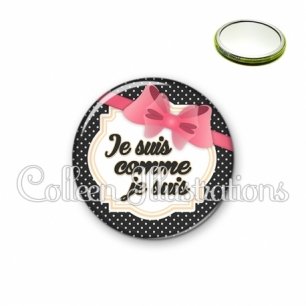 Miroir simple avec dos métallique décoré d'une image fantaisie et texte.