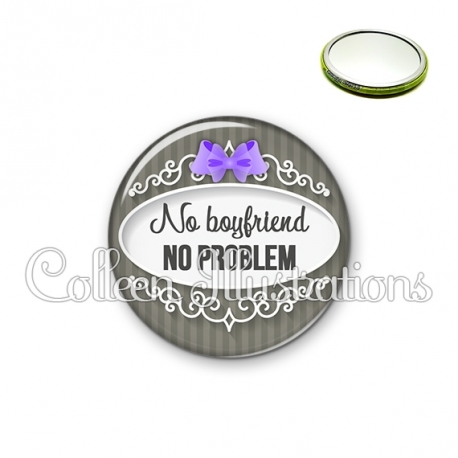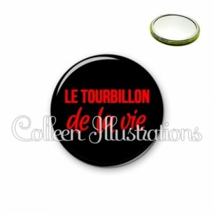 Miroir simple avec dos métallique décoré d'une image fantaisie et texte.